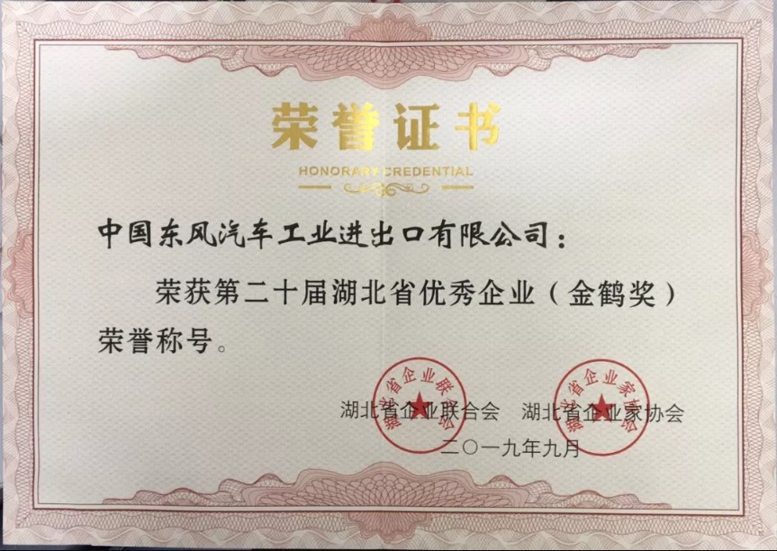 近日,湖北省企業(yè)聯(lián)合會(huì)、湖北省企業(yè)家協(xié)會(huì)發(fā)布了2019年湖北省企業(yè)100強(qiáng)名單。東風(fēng)汽車集團(tuán)有限公司以6015億元繼續(xù)領(lǐng)跑。會(huì)上同期發(fā)布了2019年湖北省優(yōu)秀企業(yè)(金鶴獎(jiǎng))和2019年湖北省優(yōu)秀企業(yè)家(金牛獎(jiǎng))。中國東風(fēng)汽車工業(yè)進(jìn)出口有限公司榮獲“2019年湖北省優(yōu)秀企業(yè)(金鶴獎(jiǎng))”榮譽(yù)稱號(hào)